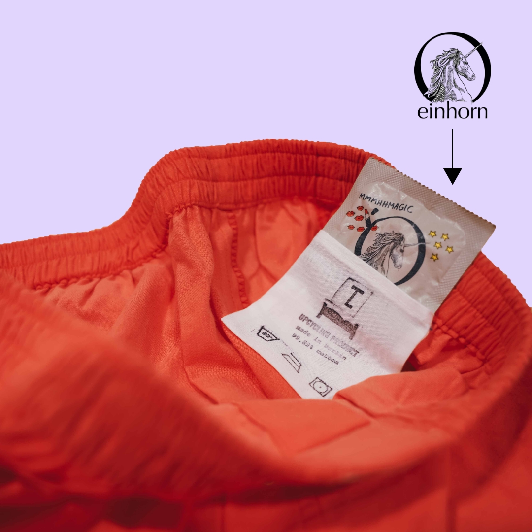 Angefangen hat es in 2014 in Kiel. Mit Ise und Ribana und einem winterlichen Luftschloss aus Zuckerwatte. Das materialisierte Luftschloss hieß dann „entzückte Watte“ und hat einen Festivalsommer lang klebrige Kindheitserinnerungen auf verspielten Festivals (3000Grad, Habitat, Simsalaboom etc.) verköstigt. 2016 wollten wir mehr Watte und weniger Zucker… Nachhaltig und dennoch entzückt sein. Mit dem Preisgeld vom Yooweedoo Changemaker Ideenwettbewerb kamen Nähmaschinen, ein Atelier in der „alten Mu“ in Kiel und große Träume vom nachhaltigen Unterhosenimperium. Lirumlarum, das Leben schwappte und schwuppte und spülte uns 2018 nach Berlin. Jobs und Studium ließen die schlüpfrigen Träume verblassen und entzückt verweilte eine Zeit lang schlafend im Schrank. Dann stieg Lisa ins Boot und hauchte frischen Wind in die Segel. Entzückt kicherte im Schlaf und wir fuhren zu dritt weiter. Das Imperium überlassen wir nun den dicken Fischen. Entzückt ist für uns ein amüsanter Spielgefährte, ein Freund und eine Tochter mit einer Prise Idealismus und Weltverbessererinnentum. Mit bewehrtem Schnitt, einzigartigen Bettwäschen, einer sehr schönen Beziehung zur integrativen Textilwerkstatt „Faktura“ und diesem Etsy Shop haben wir unseren Mojo gefunden und freuen uns über jeden Po, der sich von uns enzücken lässt. Auf euch, auf uns, auf das entzückt sein.